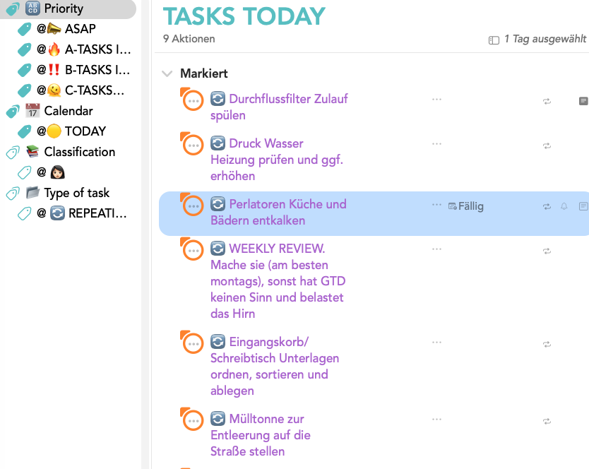 Unfortunately none of this works. I can list actions from a projects perspective or from a tags perspective. That’s it. No amount of custom perspectiving (if that’s the word) gives you groups. You can say “show me these actions” and you can say “sort them in this way”. What you can’t say is “and group them in this way”.